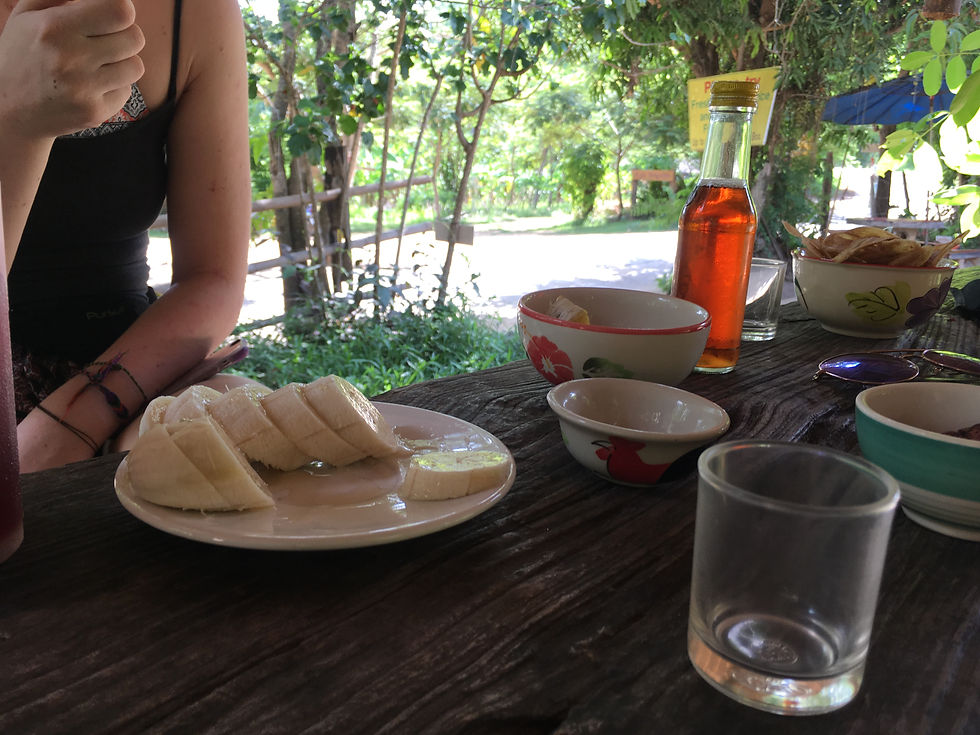 We arrived in Pai two days ago, taking the advertised "three-hour" bus ride, which really was about 4.5 hours, up the winding mountain roads. Sharing Roxanne's headphones to hear her travel playlist and staring at the misty mountain view, it was a nice moment between two friends. Keeva was alongside us as well, and we would continue the next leg of the trip as a trio.